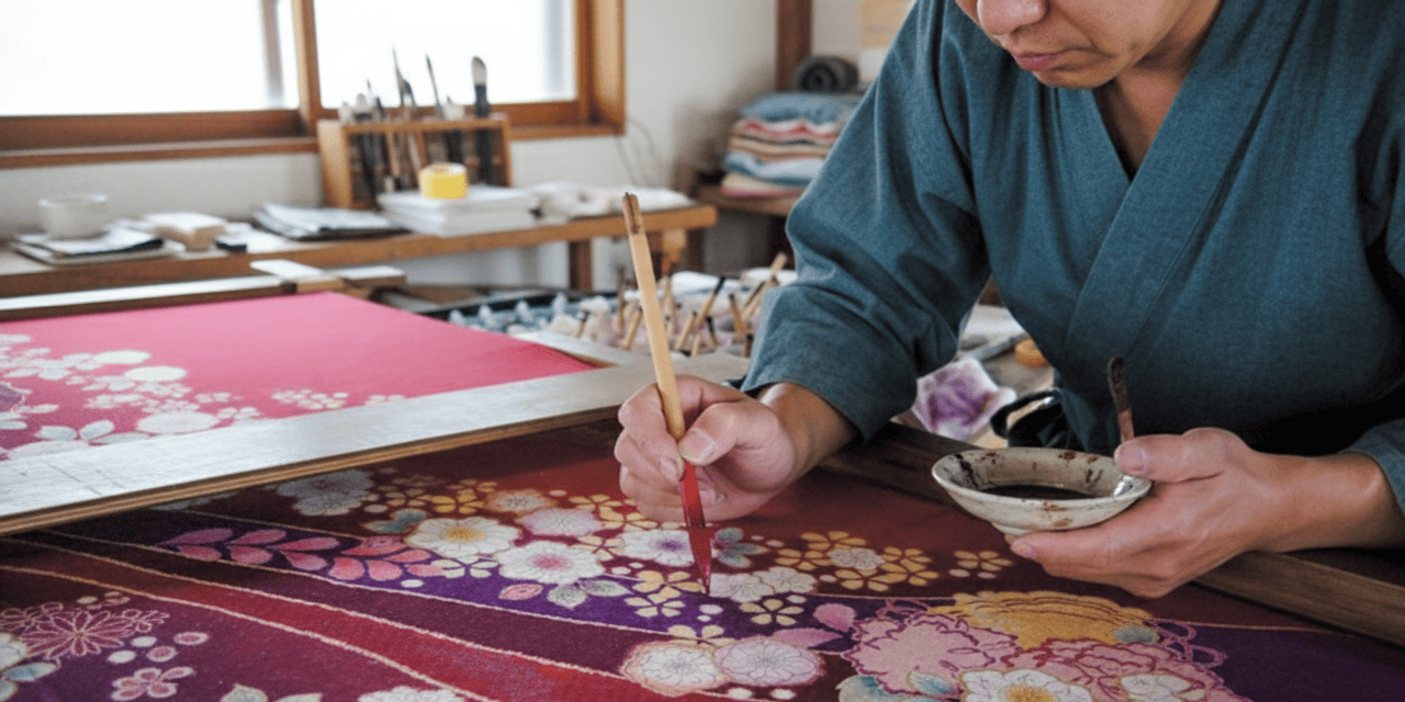 Kyoto Yuzen, Edo Komon, and shibori dyeing techniques cultivated across regions of Japan. Layers of delicate color and intricate patterns reflect the skill and sensibility of the artisans in every step of the process.