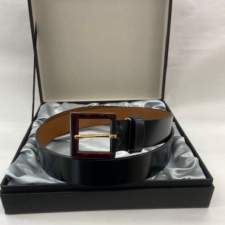 The leather used in this belt is known as cordovan, which comes from the hindquarters of a horse. Often referred to as the “diamond of leathers,” only a few belts can be made from a single horse, making it extremely rare and valuable.