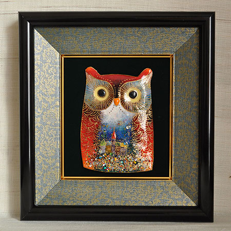 This auspicious owl has been vividly depicted using wireless cloisonné enamel.