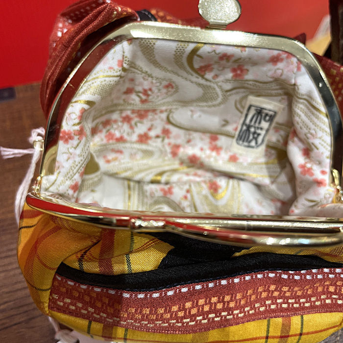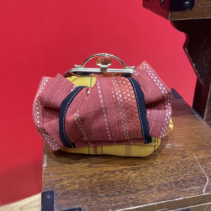 Now that kimono are no longer commonly worn, a kimono tailoring and traditional clothing artisan created this adorable clasp pouch in the style of a kimono outfit, with the hope of preserving the charm of kimono and the beauty of Japanese weaving and dyeing — in a form that fits today’s lifestyle and brings it closer to everyday life.