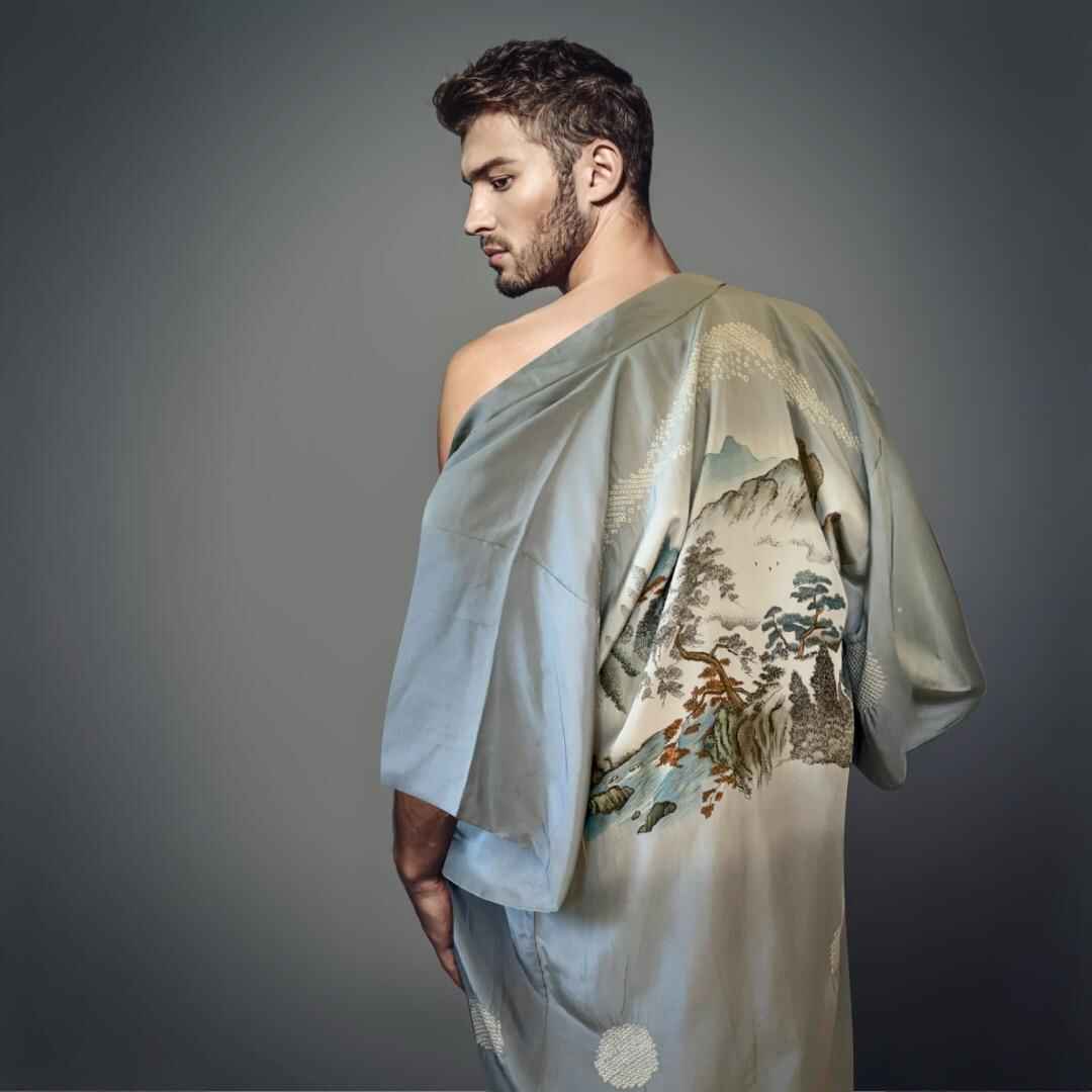 While men’s kimonos often featured simple or plain designs, they incorporated lavish patterns and bold colors in the lining or inner layers—a way to enjoy a personal and unseen beauty that was meant only for the wearer. This aesthetic sensibility has been passed down to the present day, embodying refined elegance as a form of sophisticated adult fashion.