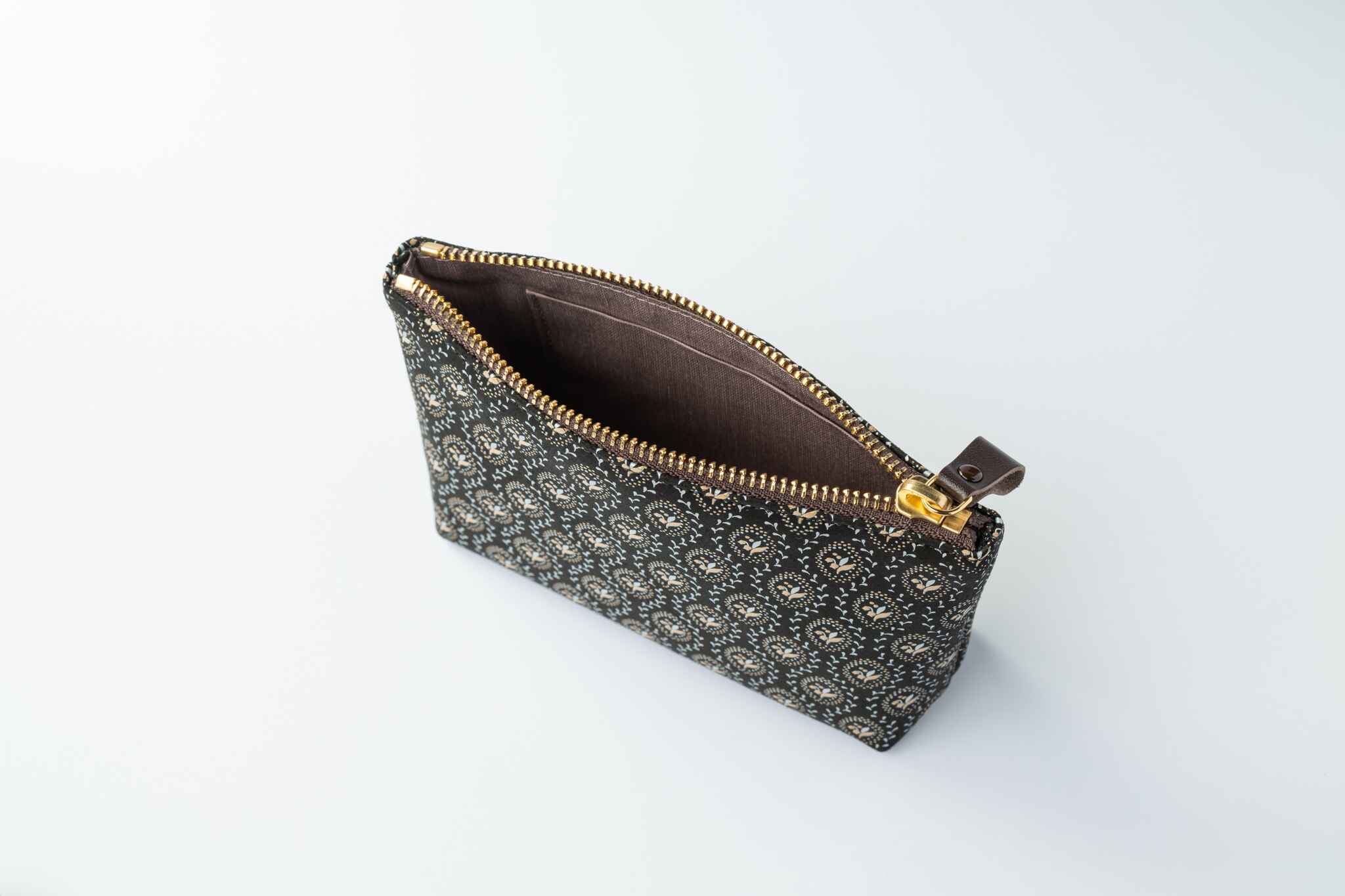 This compact yet versatile pouch is a classic from Indenya, capable of storing not only makeup essentials but also items like passports and bankbooks. Its rounded trapezoidal shape fits comfortably in the palm of your hand, giving it a charming and endearing appearance.