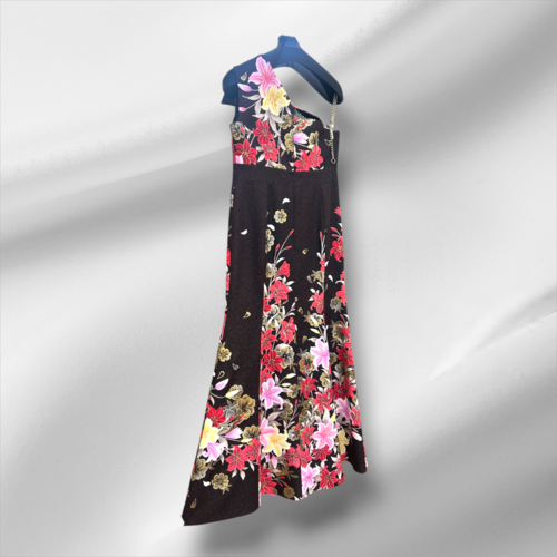 This one-of-a-kind party dress is made of rare pure silk kimono fabric that is steeped in Japanese aesthetics.