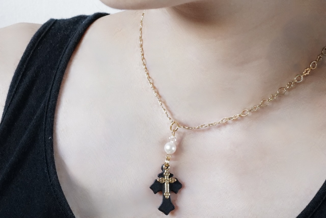 Susan is a necklace featuring an elegant cross design.